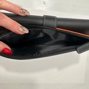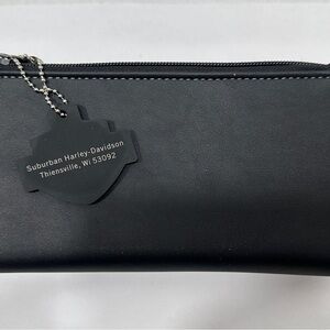 Classic black leather wallet featuring Harley-Davidson embossed logo. Durable and stylish for everyday use. New without tags
