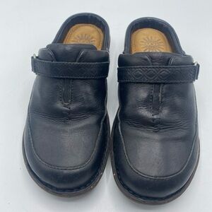 UGG Leather Clogs Mule F8910E Slides Heel Fur Lining USA 7 Snap Detail Rubber