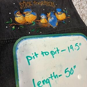 Quacker Factory Black Denim Jumper Maxi Dress Bird Embroidered Women's Size 12