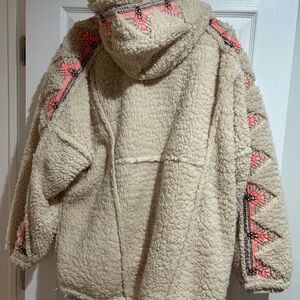 FP Movement by Free People Cream Teddy Jacket with Pink Accents