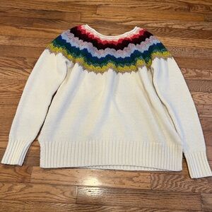 Cozy teddy jacket with a hood. Cream color with pink star accents on sleeves. Full zip closure and side pockets.