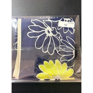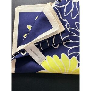 Liz Claiborne Navy Blue Yellow White Daisy Floral 100% Silk Square Scarf 26x26