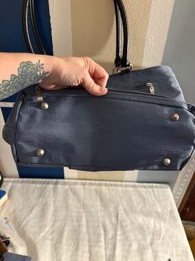 - Exterior: Metal feet to protect the base of the bag.
