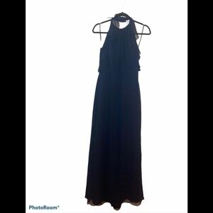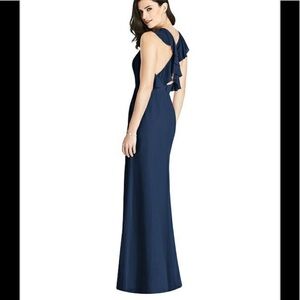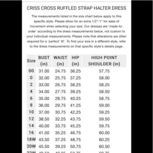 Dessy 3022 Criss Cross Ruffled Strap Halter Dress full-length lux chiffon dress features charming details. New without tags, no visible flaws, crisscross spaghetti straps on a low back contrast against a halter neckline, a trumpet skirt, center back zip, 100% polyester