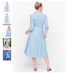 TALBOTS | Blue White Classic Poplin Shirtdress Vertical Stripe 6