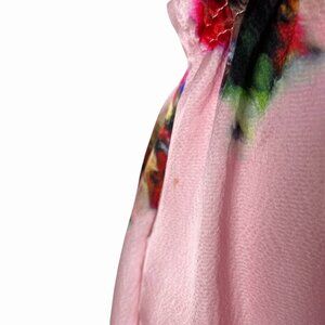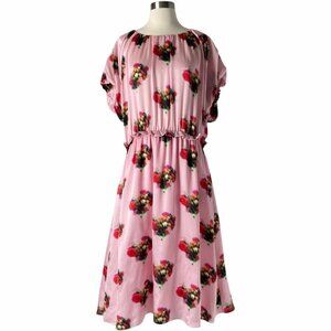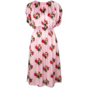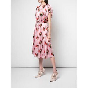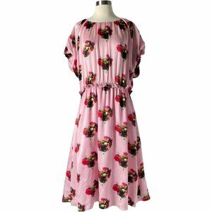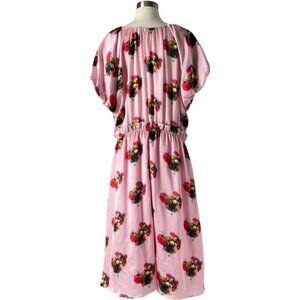 Adam Lippes Ruffle Floral Dress Pink Silk Midi US 16 Elastic Waist