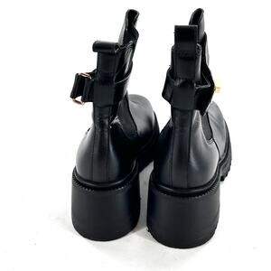 Steve Madden Gates Boots 8.5 Black NWOT Leather Buckle Chelsea Booties Lug