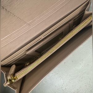 Authentic Prada wallet minimal use preowned No callouts has several cards slots two cash slots and two coin pouches. Can wear with chain as a Crossbody. CODE:209