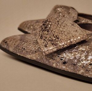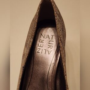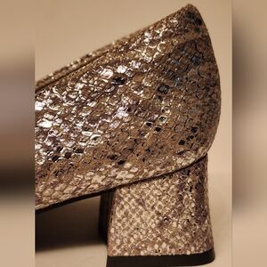Naturalizer Women's Mavis Bow Pump In Silver Metallic Snake Size 6 And 8.5