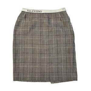 Valentino plaid Prince de Galles pencil skirt with logo Size 12. Authentic vintage. Gently used condition. Lining Acetate Cupro Rayon.