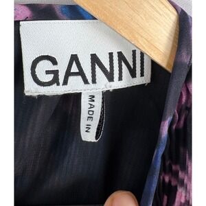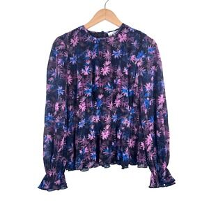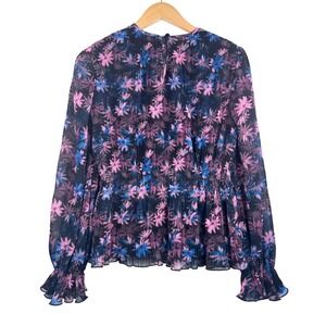 Ganni Pleated Georgette Floral Peplum Blouse crinkle preppy chic sz S