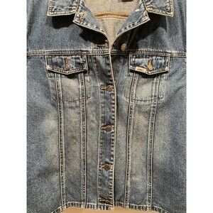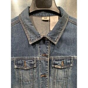 This Lee 100% Cotton Denim jacket is a must-have for any stylish woman! The cotton denim material make it comfortable and flattering, while the button accents and basic style give it a versatile edge. Perfect for any occasion, this blue jacket is a size XL and made with a cotton denim fabric. Whether you're dressing up or dressing down, this jacket will add a touch of sophistication to your outfit.