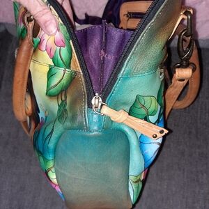 Anuschka Bag and Matching Wallet Set Cat Dog Morning Glory Flowers