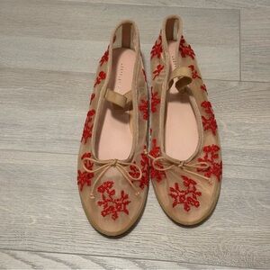 loeffler randall red embroidery mesh ballet flats size 7