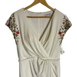 Mac Duggal White Floral Bead Embellished Sleeve Jersey Wrap Formal Gown 4