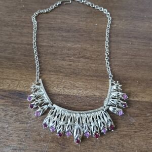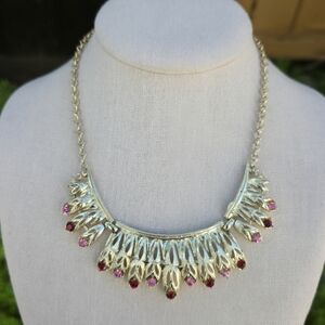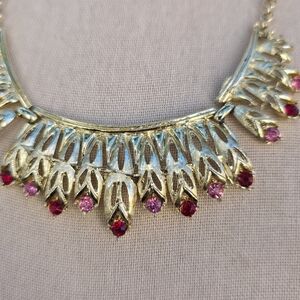 Vintage Gold Tone Choker Necklace Pink and red Rhinestone Accents Bib Style