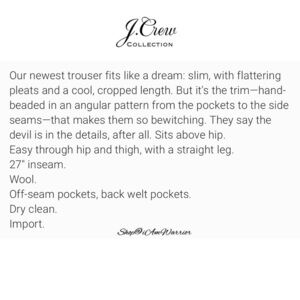 J.Crew Collection NWT beaded side stripe navy tuxedo ankle pant *shop@iamwarrior