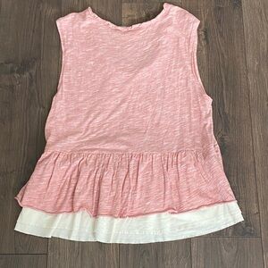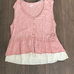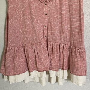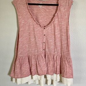 Comfortable V neck Anthropologie Pilcro Chrissy red babydoll tank top with ruffled cream hem. Features button detail and soft fabric. Ideal for casual wear. New without tags