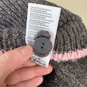 New Anthropologie Pilcro Jesse French bulldog icon cardigan sweater. Gray knit cardigan with pink trim accents. Button front, patch pockets. Slightly cropped, boxy fit. Fuzzy texture. Large French bulldog knit detail on back. New with tags attached. Size small.