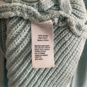 This oversized a.n.a sweater in a soothing pastel blue-green hue features a classic crew neck and a textured knit pattern. The medium-weight yarn and relaxed fit make it perfect for cooler weather, while the decorative cable knit along the sleeves adds a touch of elegance.