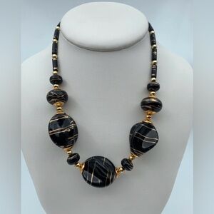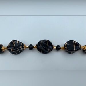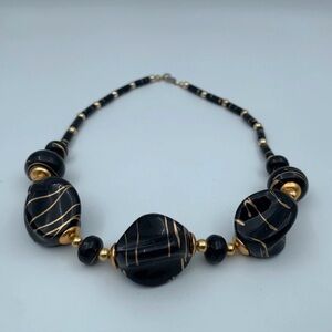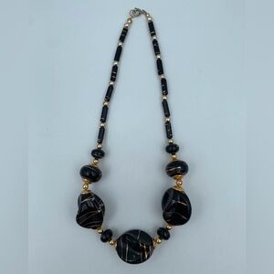 Vintage Jet Black Lucite Gold Color Drizzle Bead Necklace