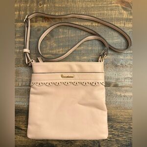 B Brentano Vegan Blush Crossbody Bag with Lace Detail and Adjustable Strap