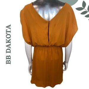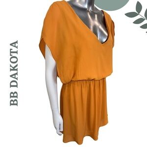 🛍️3/$40 BB Dakota V-Neck Short Sleeve Mini Dress Elastic Waist Burnt Orange Med
