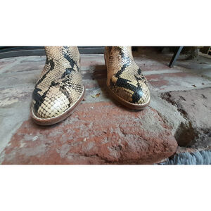 Step into fun with the Lucky Brand Snakeskin pattern Ankle Boots, where chic meets comfort. These boots feature a striking snakeskin pattern that adds a touch of bold elegance to any outfit. They effortlessly transition from day to night. Size 10. Pet Friendly Home