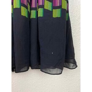 Bold, artistic, and unmistakably designer — this Jonathan Saunders sleeveless silk dress features a vibrant multicolor geometric print in a flattering fit-and-flare silhouette. A standout piece from the celebrated British designer, known for his modern use of color and pattern.