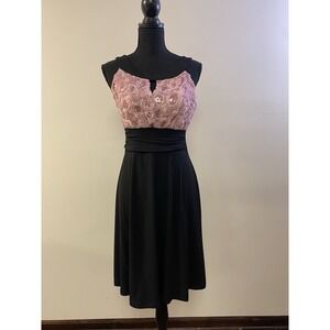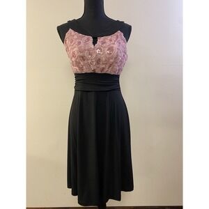 Women's Blush Pink and Black Rosette Sequin Sleeveless Cocktail Dress Size 6