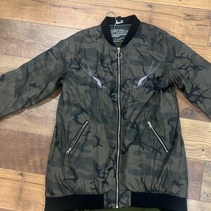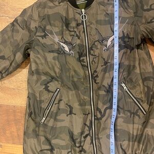Stay stylish and cool with this chic camouflage wind suit bomber jacket. Perfect for any casual outing.