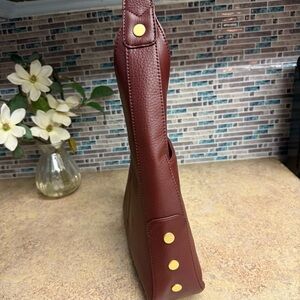 New with tags Hammitt Tim Medium featured in Cherrywood burgundy pebbled leather with brushed gold hardware.