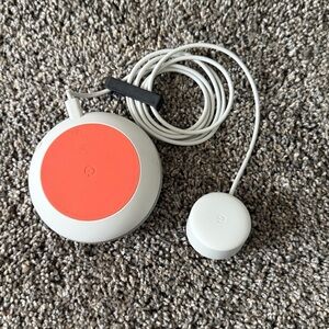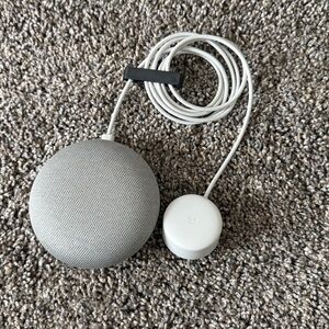 Google Home mini speaker assistant in light grey. Speaker comes with charger, speaker is gently used and in excellent condition, does not come with original packaging.