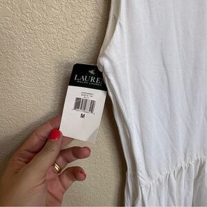 NWT Lauren Ralph Lauren Women’s dress white sleeveless midi lace hem cotton embroidered floral spring summer bridal shower graduation Easter size medium
