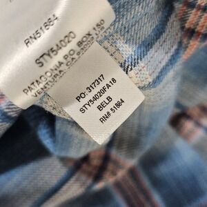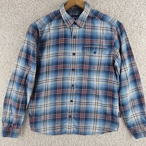 Patagonia Fjord Flannel Shirt Mens Small Blue Plaid Organic Cotton Casual 54020