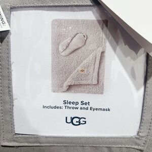 UGG Sherpa Sleep Set Dove Gray Plush Throw Blanket Eyemask Cozy Gift - NEW