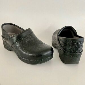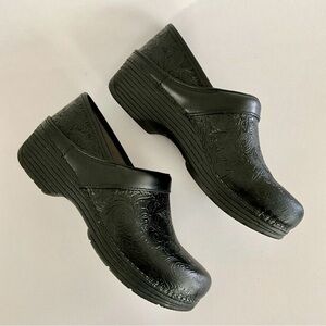 Dansko Clogs Women 8.5 Black Tooled Leather Comfort Nursing Professional