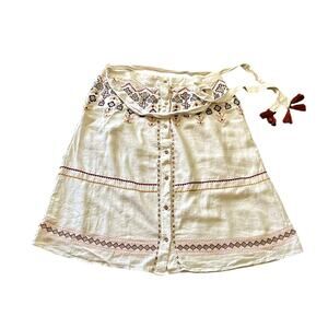 NewDenim & Co Canyon Retreat Oasis Embroidered Linen blend Skirt SizeLarge Boho