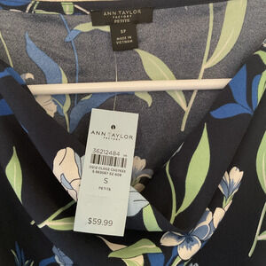 Ann Taylor Factory Floral Sleeveless Blouse Women’s Petite Small | Navy Blue | NWT