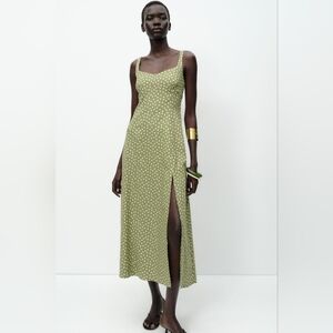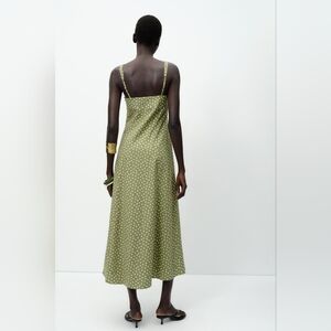 SIZE XL LINEN BLEND POLKA DOT MIDI DRESS ECRU/KHAKI ZARA 8008/677/071