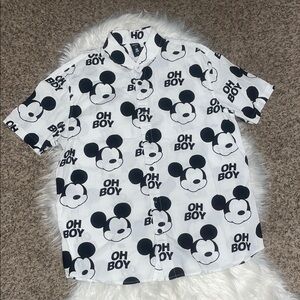 Disney Collection by Neff “Oh Boy”, Faceless Mickey Mouse Print Button Up Shirt