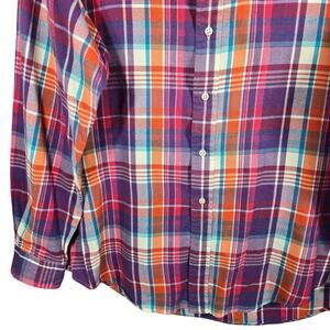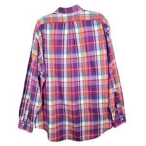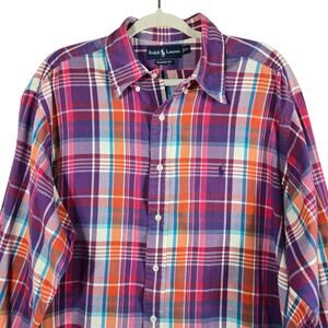 Ralph Lauren Shirt Mens XL Purple Plaid Flannel Button Up Custom Fit Pony VTG