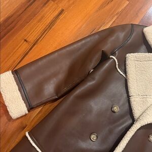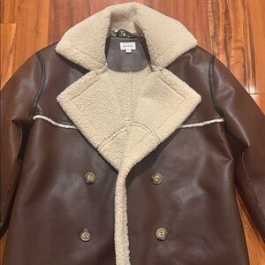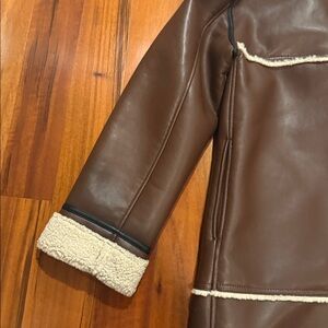 Chic brown faux leather with soft cream interior. Features chain detail.
