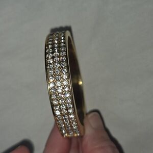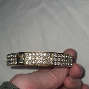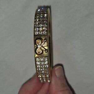 BETSY JOHNSON Stunning gold and Rhinestone with ribbon / bow bracelet with Magnetic Close to open up and easily slide on. Signature name logo on inside of bracelet. Excellent Used Condition. Measurements are approximate.