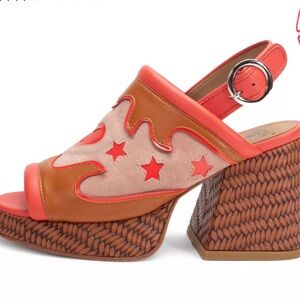 John Fluevog platforms size 7. New in box. They come with dust bag. Inspired by the vintage Tasty Vogs, The Picnic Riverdale might look good enough to eat, but we suggest slipping them onto your feet instead. A classic slingback style platform heel, The Riverdale is perfect for a midday frolic and guaranteed to make you look positively scrumptious. Picnics in the park.