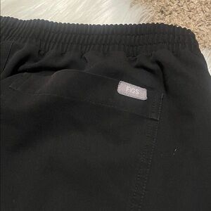 Comfortable black scrub pants with a drawstring waist. Perfect for casual day at work. Size is large, waist 18”, rise 12.5”, inseam 29.5”, and length is 41”. A total of 10 pockets, drawstring waistband. In very good condition.