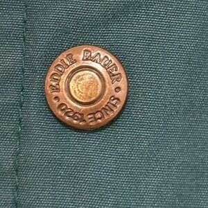 Vintage Eddie Bauer mountain parka features a durable teal canvas shell with a warm wool-blend plaid lining in the upper body. Designed for utility, it includes four large front cargo pockets, a D-ring attachment, and a full-zip front with a snap-button storm flap. The adjustable cuffs and high-neck collar provide extra protection against the elements, while the classic outdoor aesthetic makes it a versatile piece for cold-weather layering.