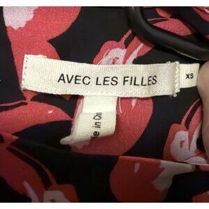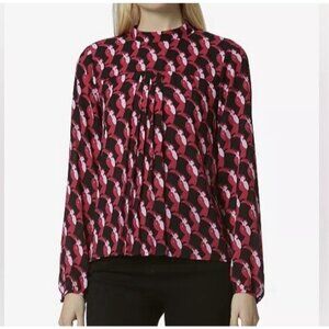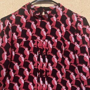 Avec Les Filles pleated Blouse mock neck top Size XS Toucan Bird Black/ Berry Combo Long Sleeve