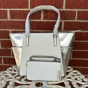 Michael Kors Silver and White Tote Bag Set