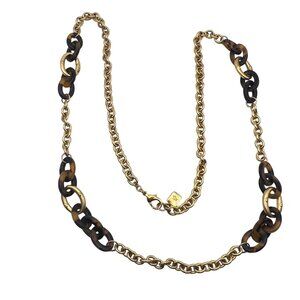 Ralph Lauren Gold Brown Tortoiseshell Link Chain Necklace Signed 32" Vintage